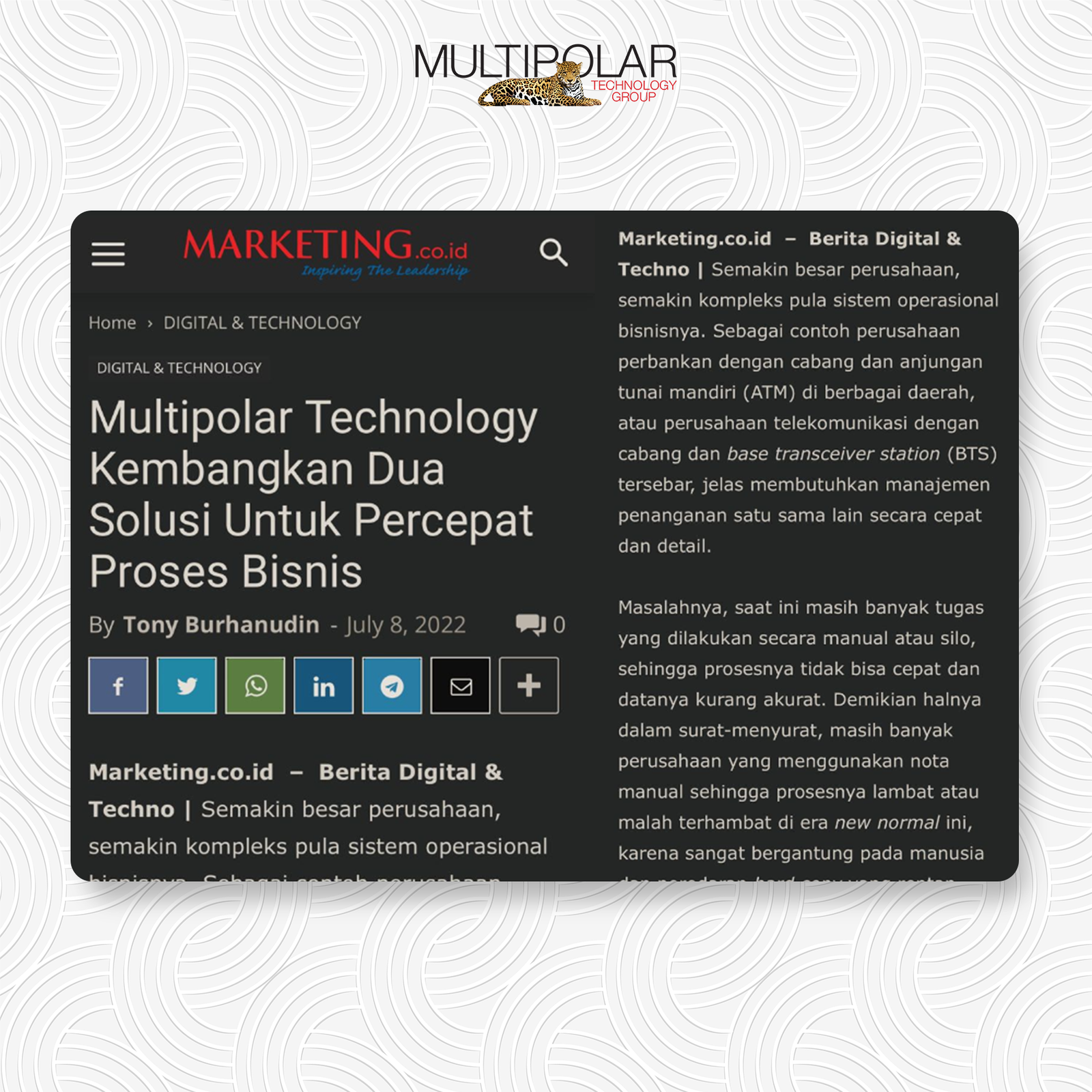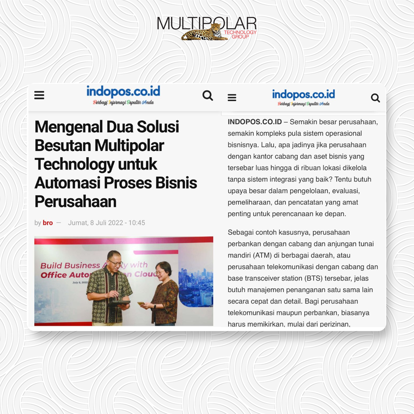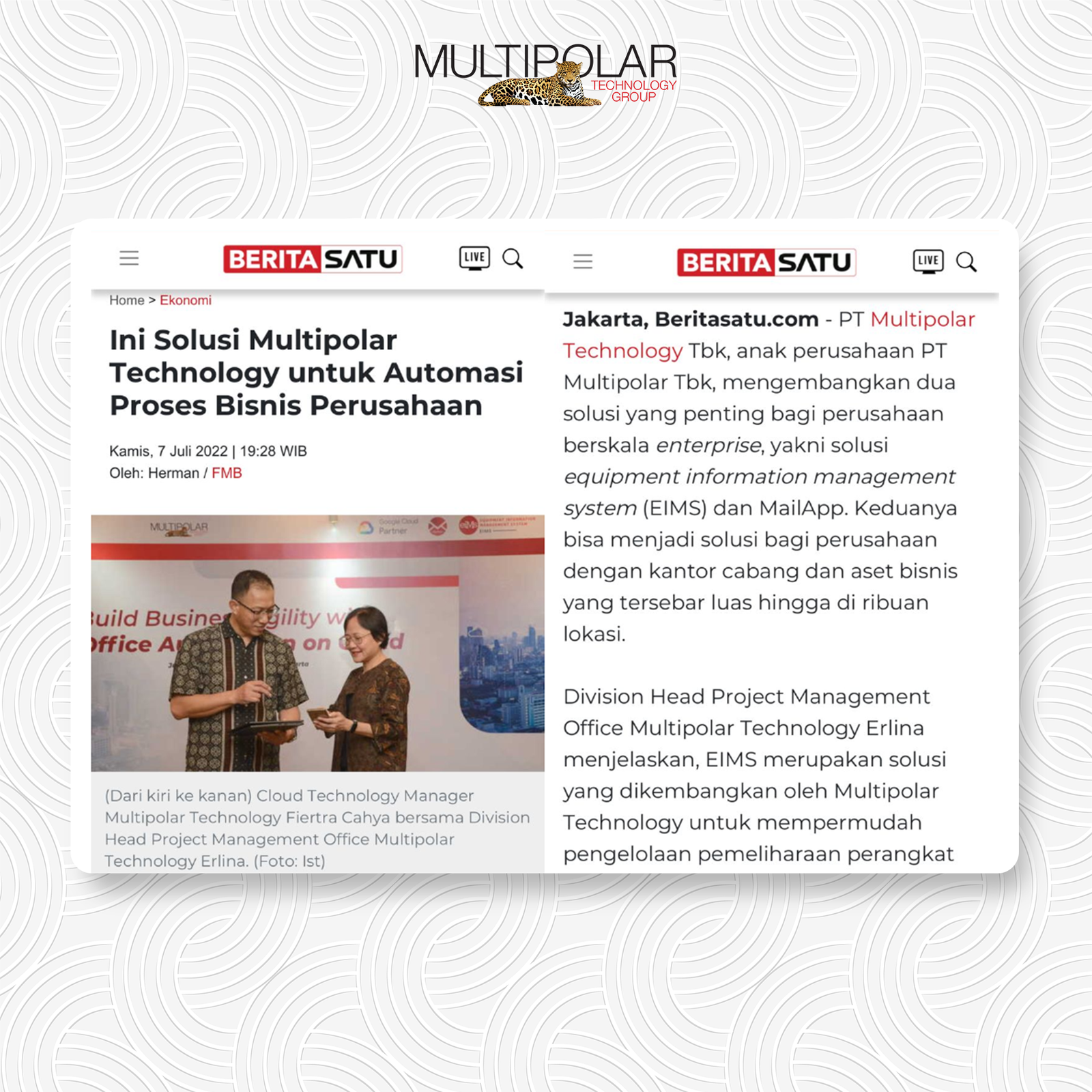 On July 27th 2022, PT Multipolar Technology Tbk (MLPT) achieved ISO/IEC 27001:2013 Information Security Management System certification with the scope of Hardware, Software, and Professional Services from PT BSI Group Indonesia (BSI). “Obtaining […]