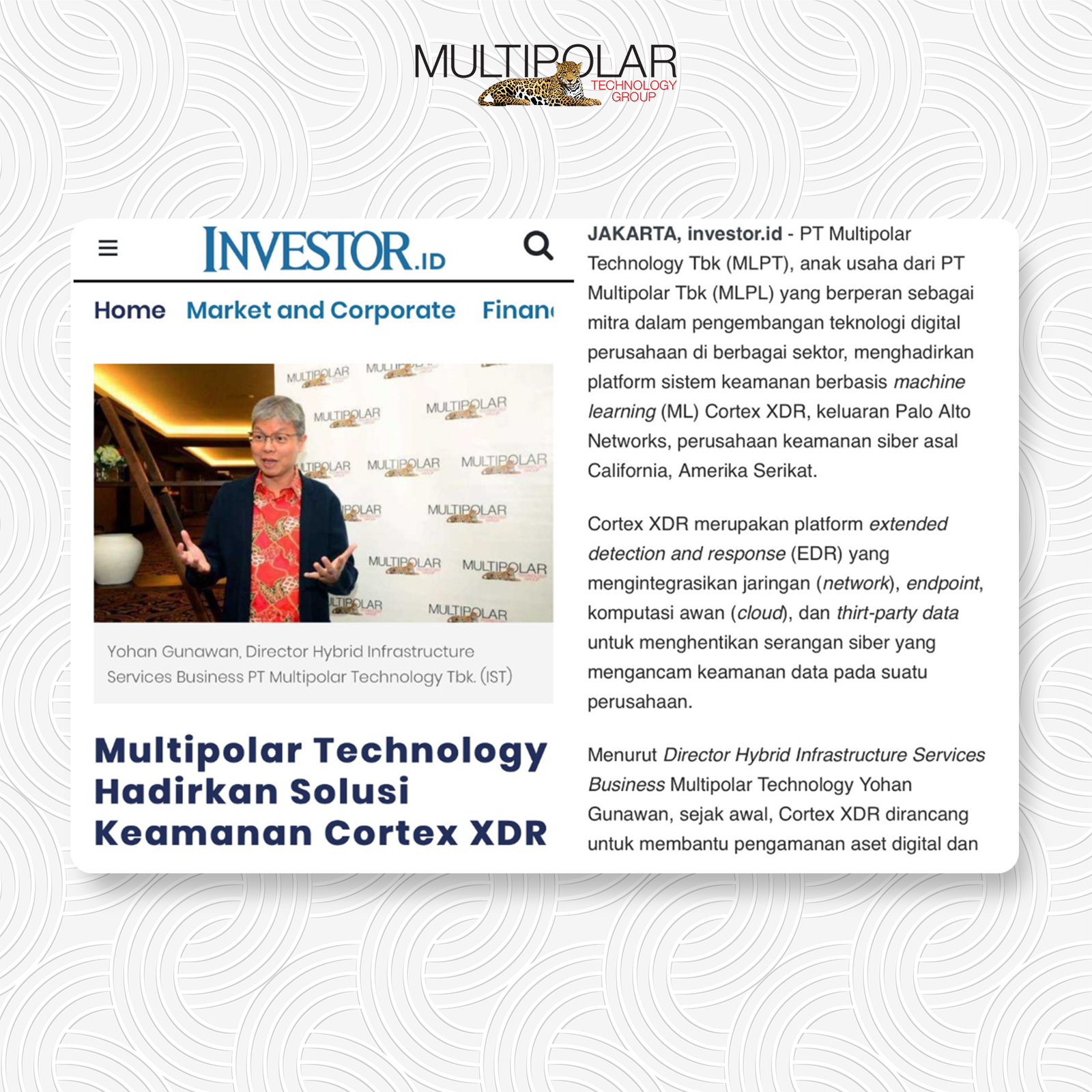 Jakarta, Beritasatu.com – PT Multipolar Technology Tbk (IDX: MLPT), anak perusahaan PT Multipolar Tbk (IDX: MLPL) mengusung platform Cortex XDR keluaran Palo Alto Networks ke pasar Indonesia. Cortex XDR adalah platform extended detection and response y […]