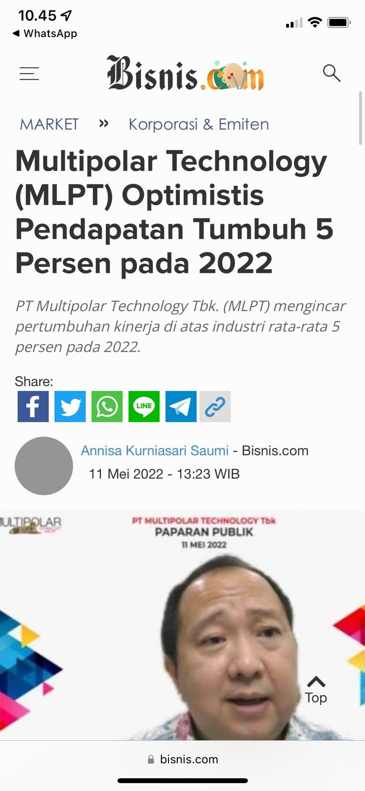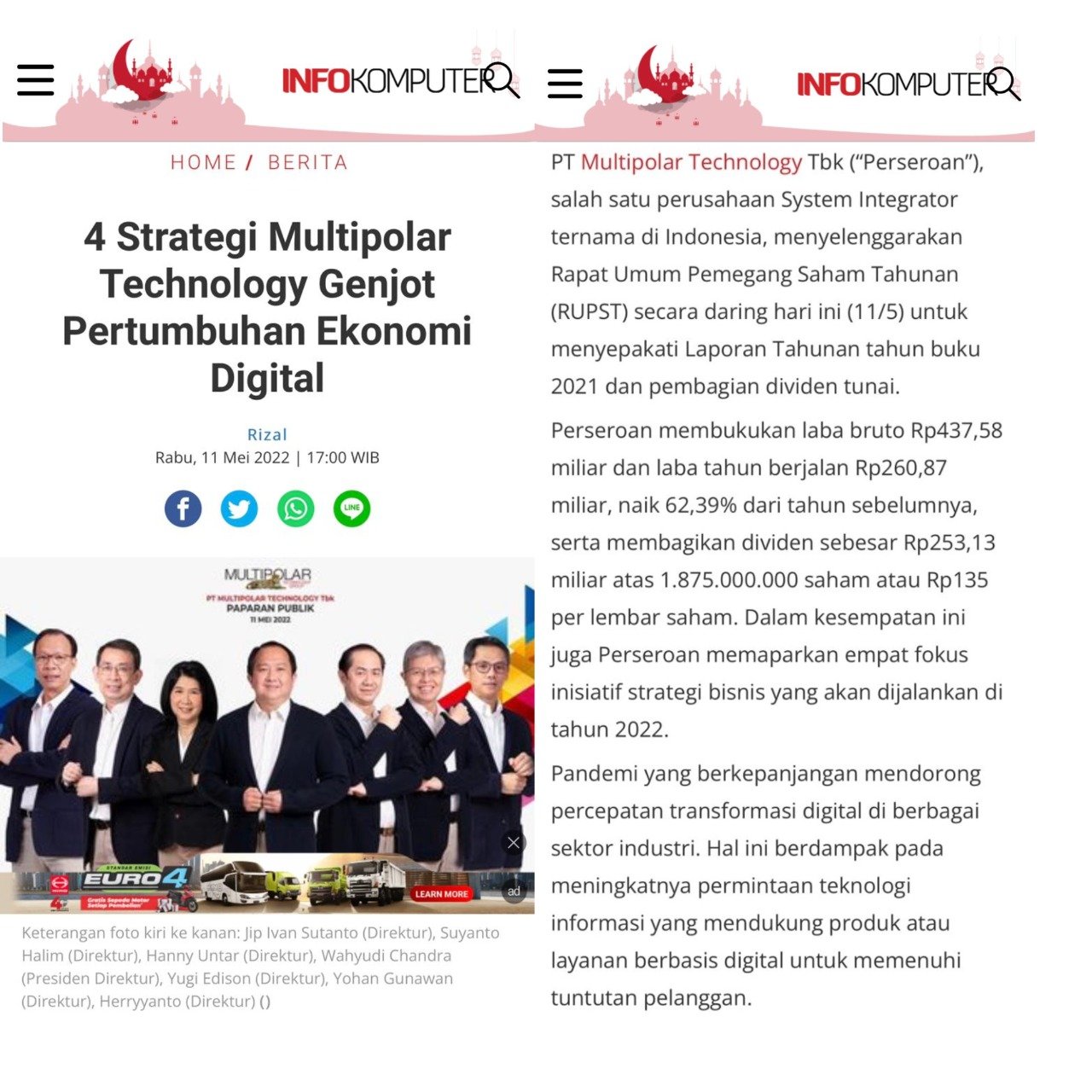 PT Multipolar Technology Tbk (“Perseroan”), salah satu perusahaan System Integrator ternama di Indonesia, menyelenggarakan Rapat Umum Pemegang Saham Tahunan (RUPST) secara daring hari ini (11/5) untuk menyepakati Laporan Tahunan tahun buku 2021 dan pem […]