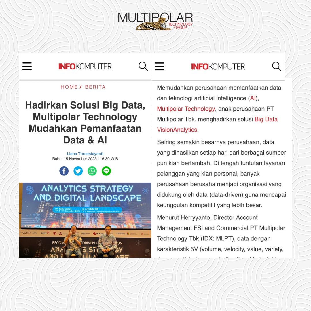 Memudahkan perusahaan memanfaatkan data dan teknologi artificial intelligence (AI), Multipolar Technology, anak perusahaan PT Multipolar Tbk. menghadirkan solusi Big Data VisionAnalytics. Seiring semakin besarnya perusahaan, data yang dihasilkan setiap […]