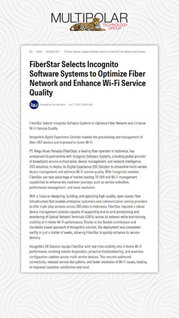 “Through our collaboration with Incognito, Multipolar Technology has provided FiberStar with a best-in-class and Telco standard device management solution (FTTH multibrand-ONT management) empowering them to deliver exceptional connectivity experiences,” said Yugi Edison, Director Account Management Telco & Public Sector, at Multipolar Technology. “We are excited to continue this collaboration with FiberStar to foster innovation throughout the region.”