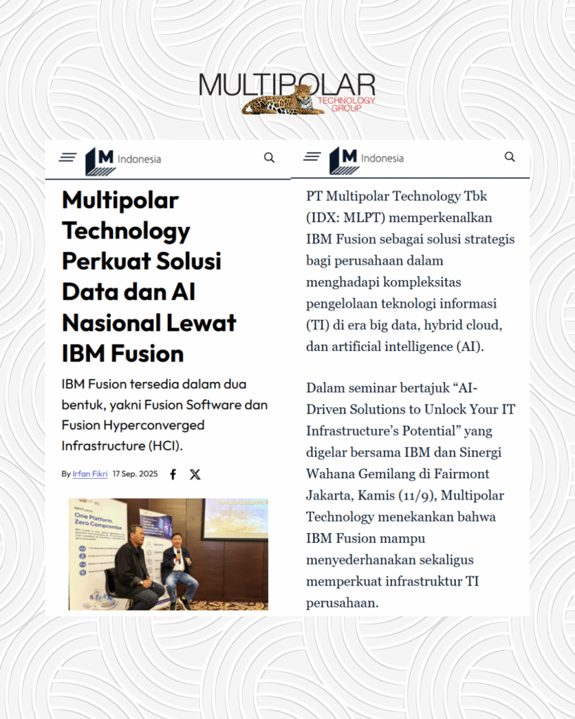 Multipolar Technology menegaskan IBM Fusion menjadi pilar penting bagi perusahaan yang ingin mempercepat transformasi digitalnya. Dengan solusi ini, kompleksitas infrastruktur TI dapat lebih mudah dikelola, sekaligus membuka jalan bagi pemanfaatan big data dan AI secara lebih optimal.
