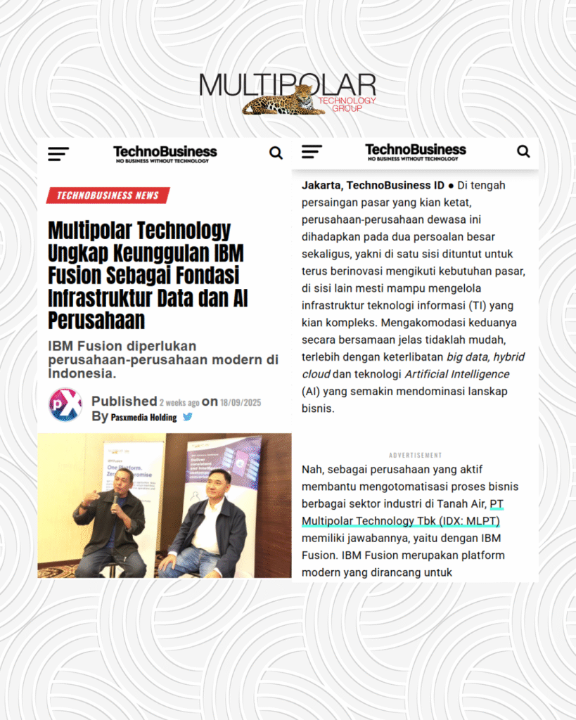 Jadi, di tengah kebutuhan untuk terus berinovasi dan tantangan kompleksitas infrastruktur TI, ledakan big data, dan meningkatnya adopsi AI, IBM Fusion hadir sebagai solusi strategis. “Menggunakan IBM Fusion, kompleksitas TI perusahaan menjadi lebih mudah dikelola. Tim ahli dari Multipolar Technology siap membantu perusahaan Anda untuk implementasinya,” tutup Jeffry.