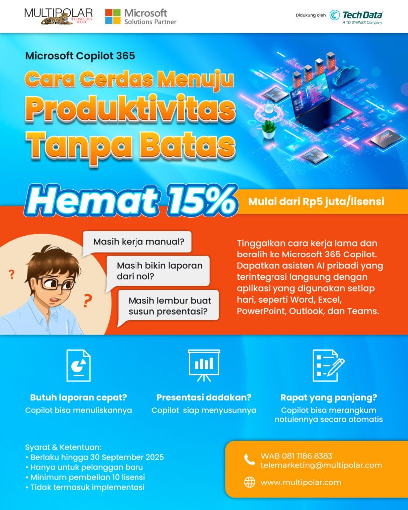 Yuk, manfaatkan penawaran terbatas ini sekarang juga. Hubungi telemarketing@multipolar.com atau WAB 081 1186 8383, dan rasakan transformasi produktivitas Anda!