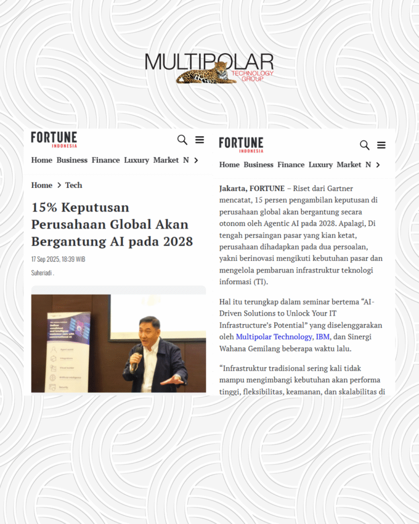 Hal itu terungkap dalam seminar bertema “AI-Driven Solutions to Unlock Your IT Infrastructure’s Potential” yang diselenggarakan oleh Multipolar Technology, IBM, dan Sinergi Wahana Gemilang beberapa waktu lalu.