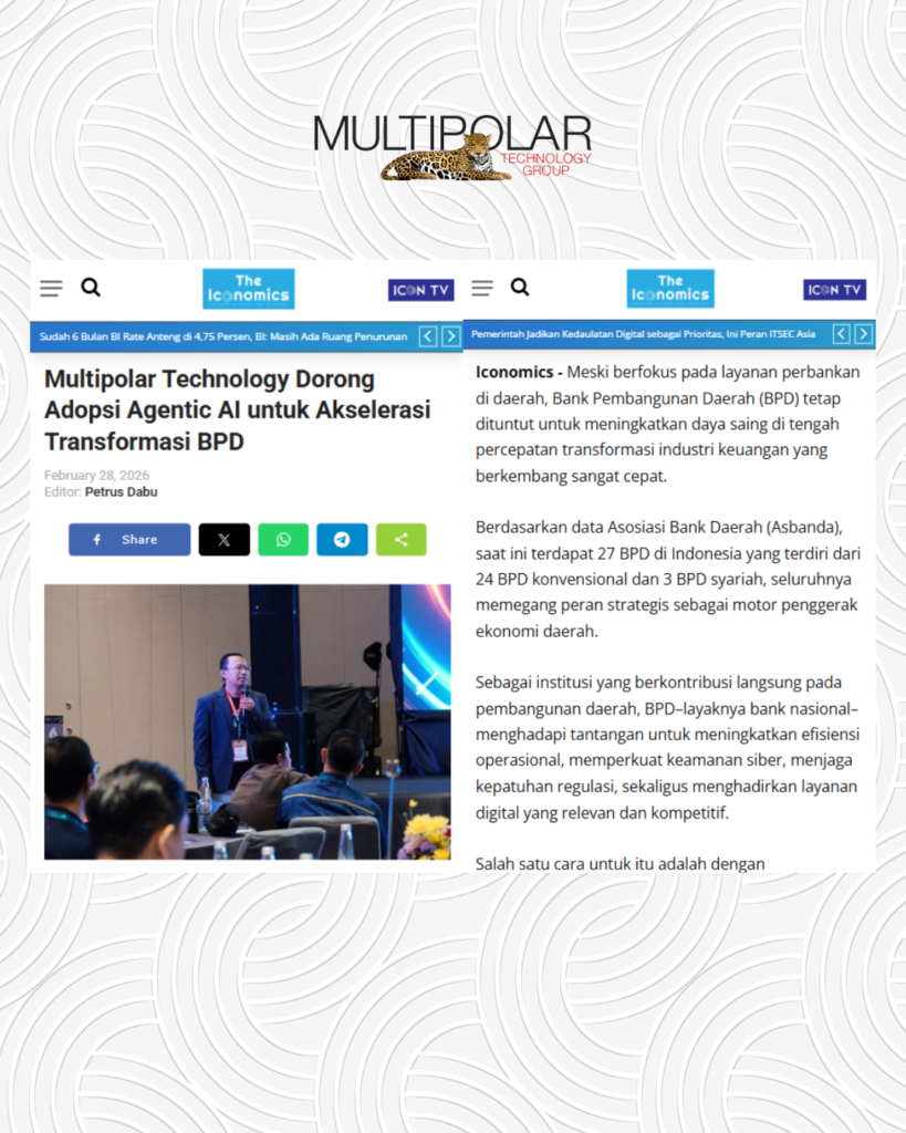 Sebagai system integrator yang telah berpengalaman mendampingi berbagai institusi keuangan terkemuka di Indonesia, Multipolar Technology juga memastikan integrasi Agentic AI dapat berjalan harmonis dengan core banking, digital channel, maupun sistem pendukung lainnya yang telah dimiliki BPD. Kini, lanjut Achmad, adopsi Agentic AI telah berkembang dari tahap eksperimental ke tahap implementasi nyata yang menghasilkan nilai bisnis.