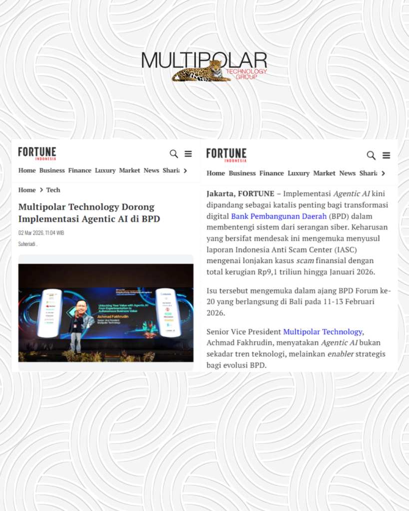 Senior Vice President Multipolar Technology, Achmad Fakhrudin, menyatakan Agentic AI bukan sekadar tren teknologi, melainkan enabler strategis bagi evolusi BPD.